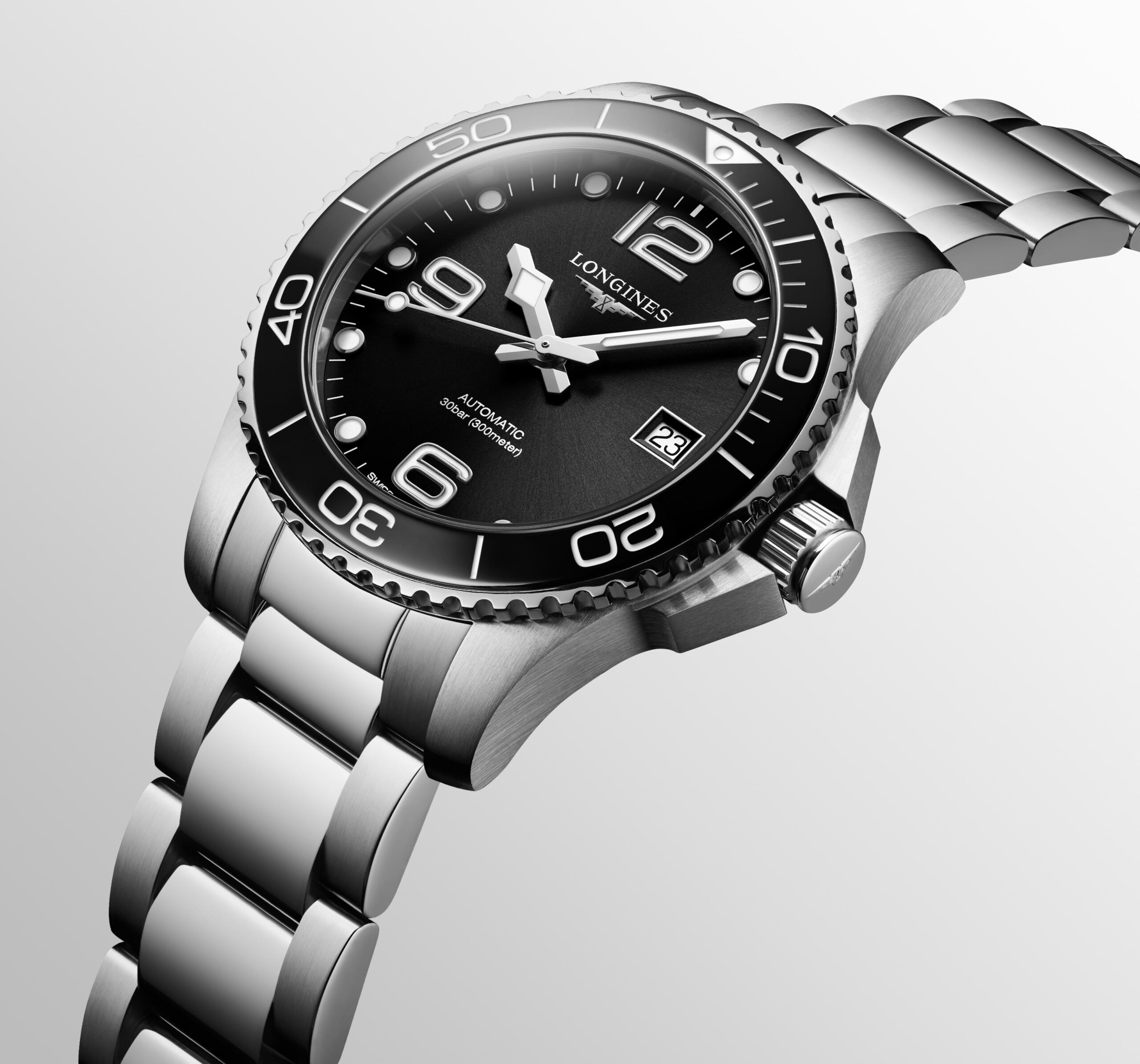 Ispirata al mondo degli sport acquatici, la collezione HydroConquest si distingue per il suo design audace. Impermeabile fino a 30 bar (300 m), con lunetta girevole unidirezionale, corona e fondello a vite, garantisce un’affidabilità eccezionale in ogni momento.