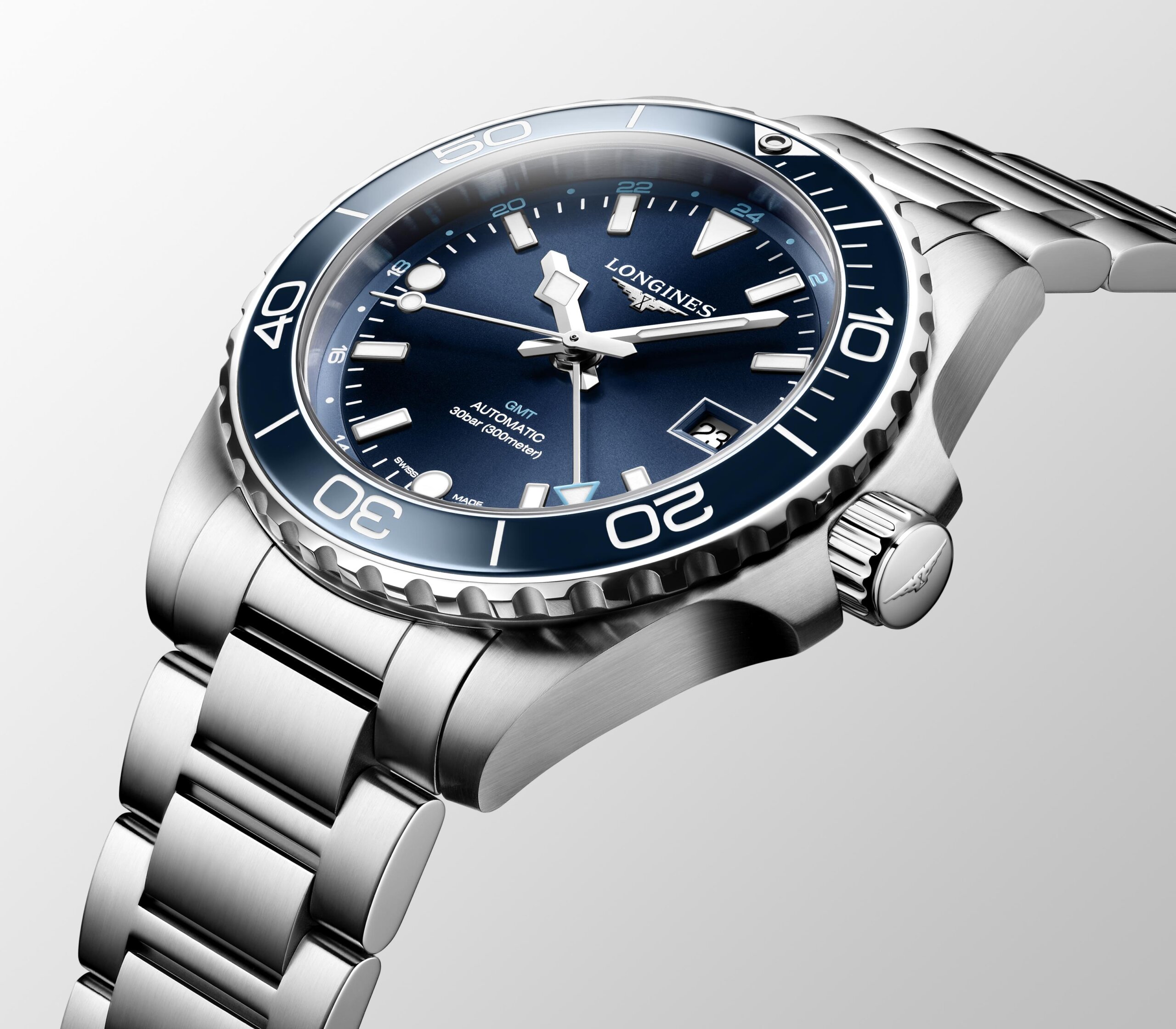 Un grande classico tra gli orologi sportivi: la linea HydroConquest è stata ampliata con modelli dotati di funzione GMT. Combinando eccellenza tecnica ed eleganza, l’HydroConquest GMT ha tratto ispirazione dal mondo degli sport acquatici, attingendo alla storica esperienza di LONGINES nello sviluppo di orologi con più fusi orari. Impermeabile fino a 30 bar (300 m), questo orologio GMT è alimentato da un esclusivo calibro LONGINES dotato di spirale in silicio e resistente ai campi magnetici.