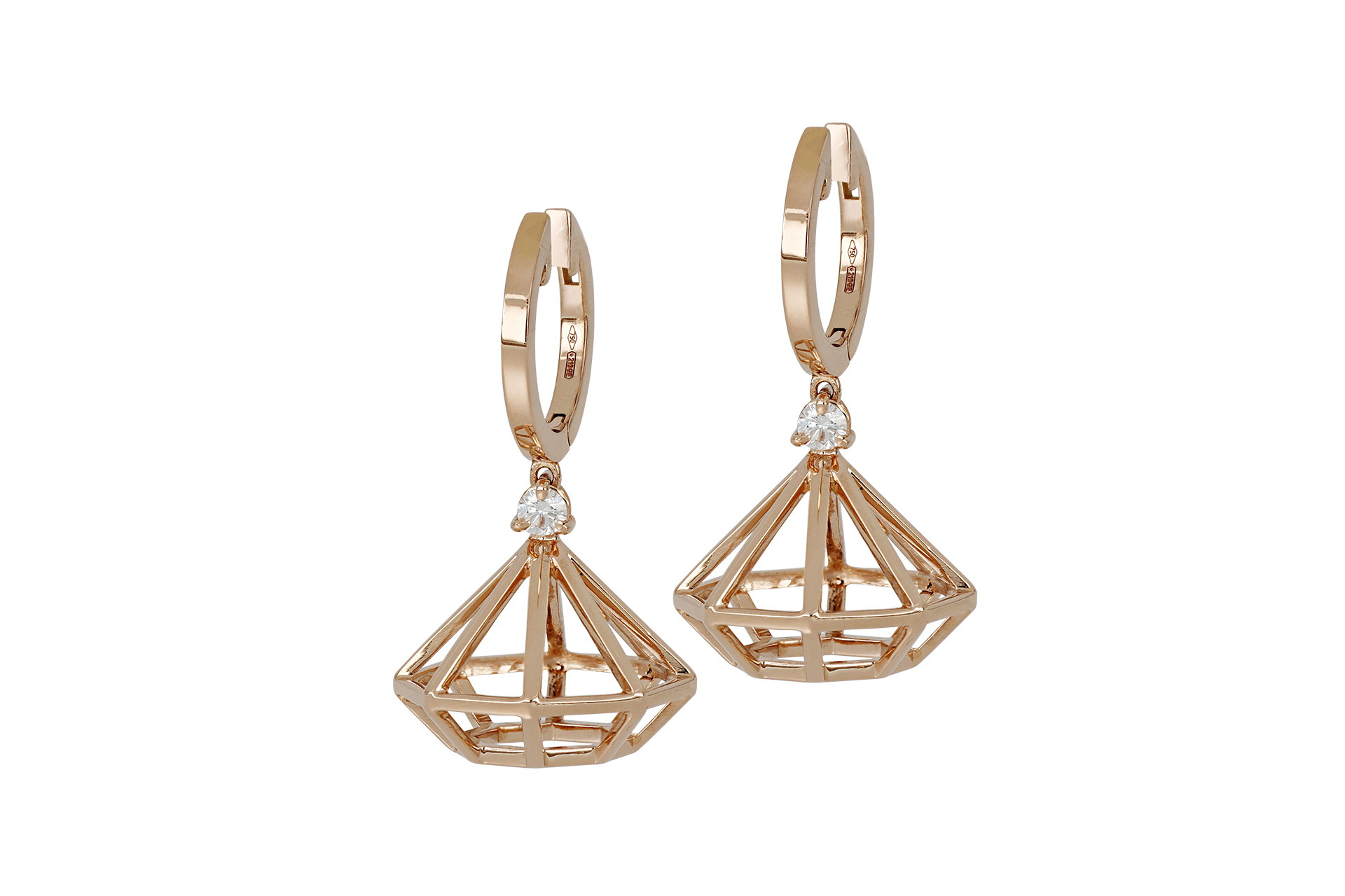 Orecchini in oro ROSA 750/1000 con diamanti bianchi taglio a brillante.