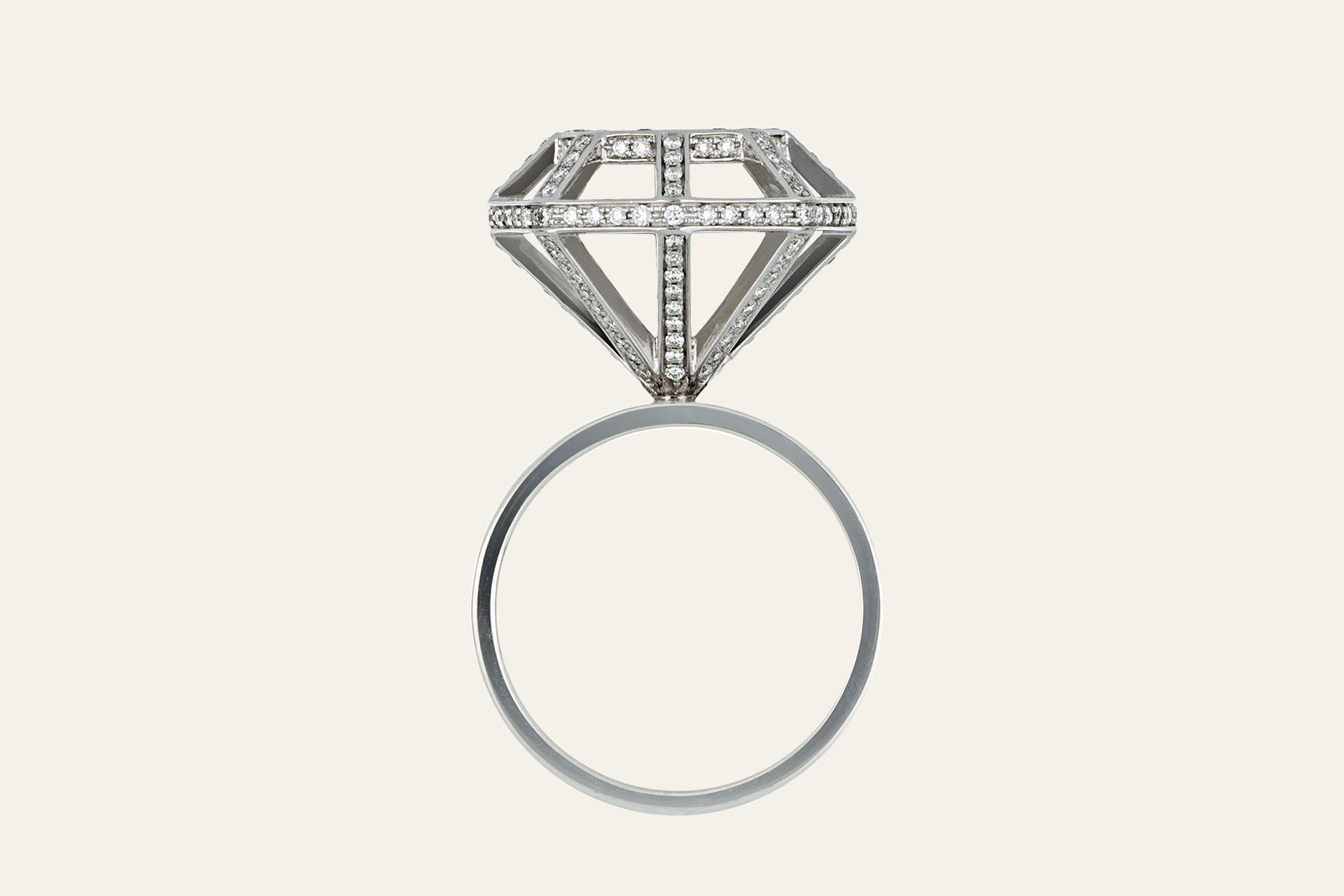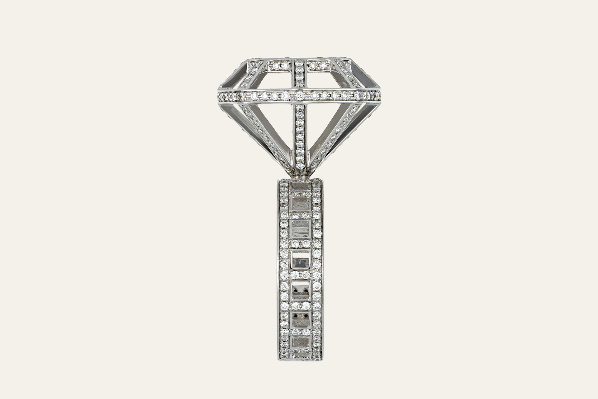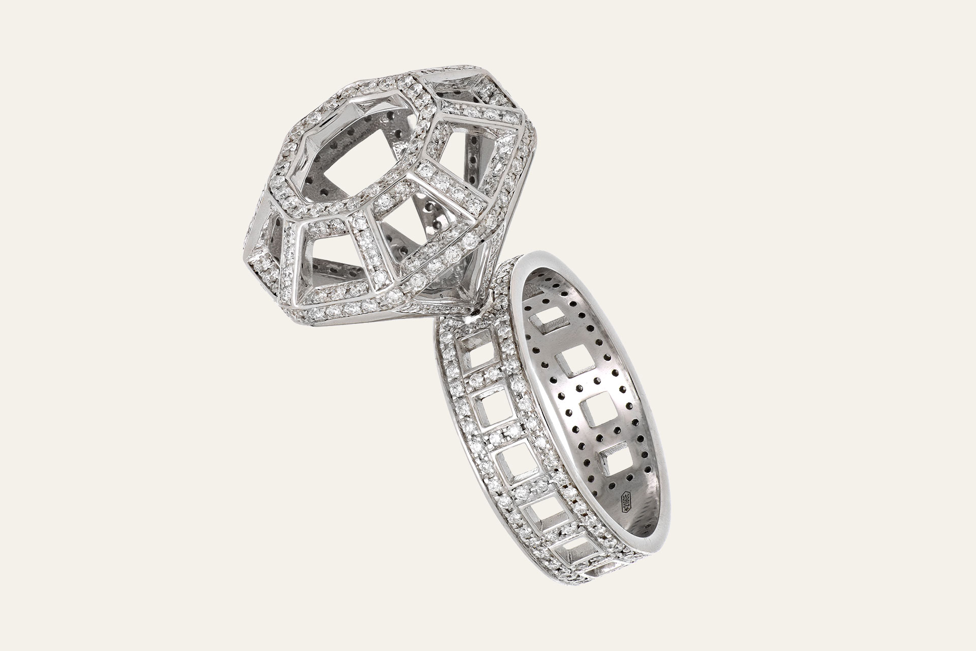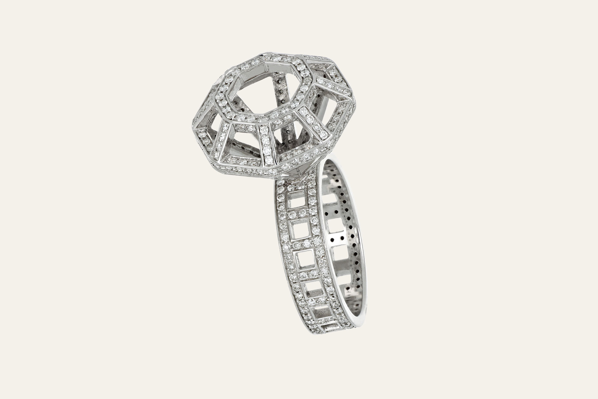 Anello in oro bianco 750/1000 con incastonati 354 diamanti bianchi taglio a brillante.
